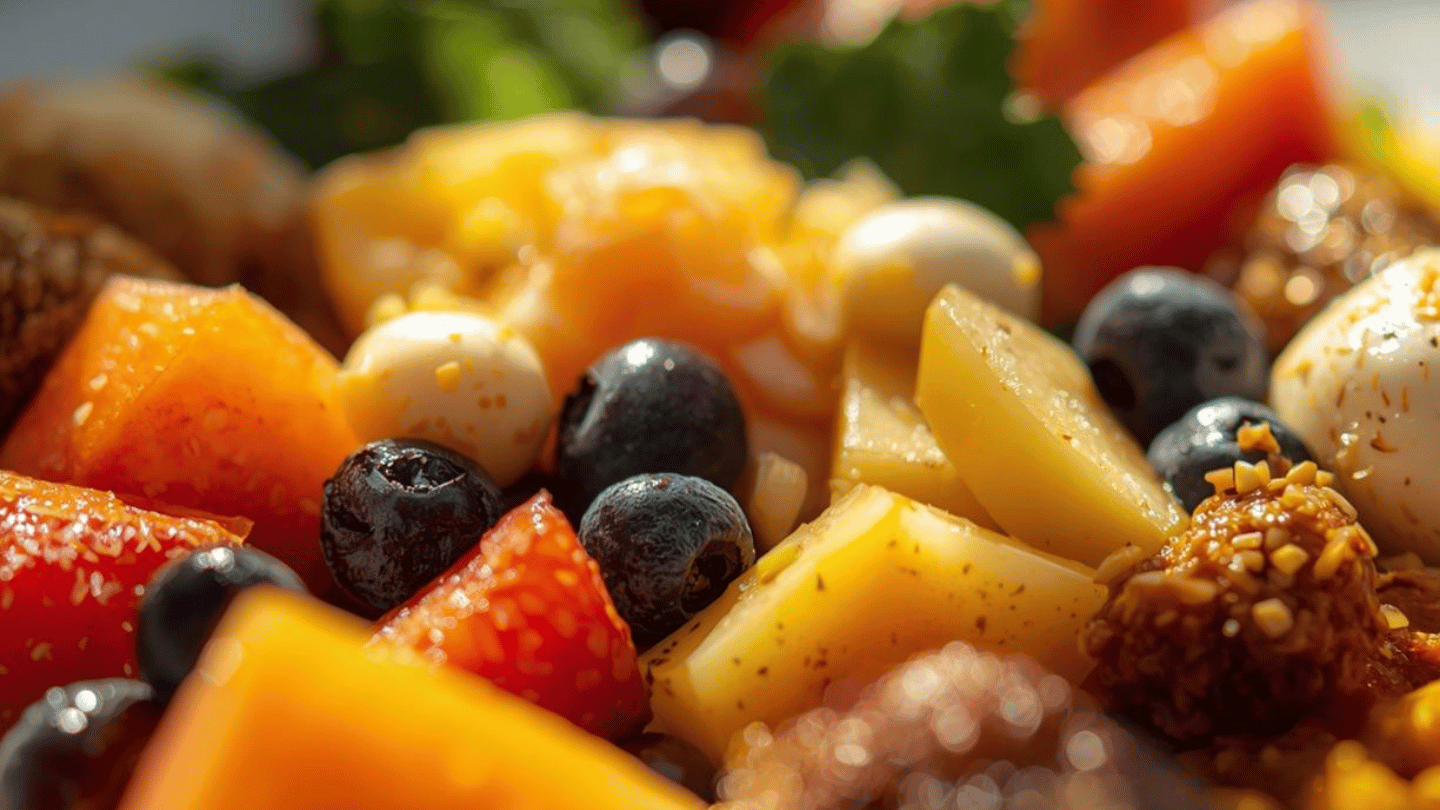 - एंटीऑक्सिडेंट्स – बेरीज, ग्रीन टी, डार्क चॉकलेट आदि कोशिकाओं को नुकसान से बचाते हैं और सूजन घटाते हैं।