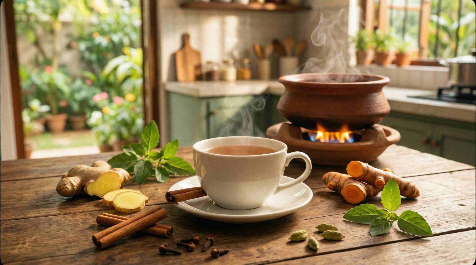 In Indian households, sipping herbal drinks like tulsi tea, ginger water, or spice decoctions (kadha) has been a tradition for generations.