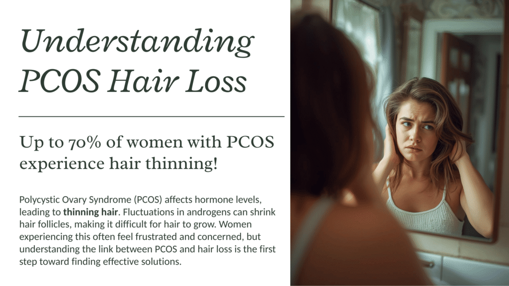 Many women with PCOS struggle with hair thinning, slow regrowth, and even bald patches. You try shampoos, oils, supplements — but nothing seems to work long term.