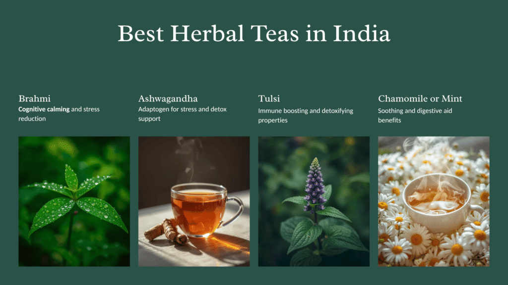 For detox and cleansing: Try green tea, tulsi, or ginger—the Top Herbal Teas for Detoxification in India.