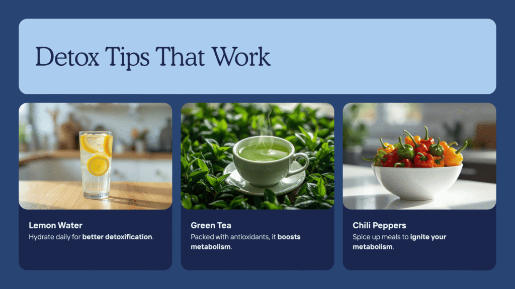 Because let’s be honest—we’re busy. We’re balancing work, families, moods, cycles, and let’s not forget… laundry. Here are a few bite-sized habits that quietly support your detox and weight loss goals without hijacking your day: