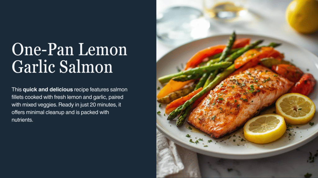 Salmon sounds fancy, but this recipe is weeknight-friendly. Pan-sear with garlic and lemon, serve over quick rice, and you’ve got restaurant vibes at home. I rely on meals like this when I want healthy weeknight meals that feel special without extra work. Even beginners can pull this off confidently. Plus, the leftovers taste amazing the next day.