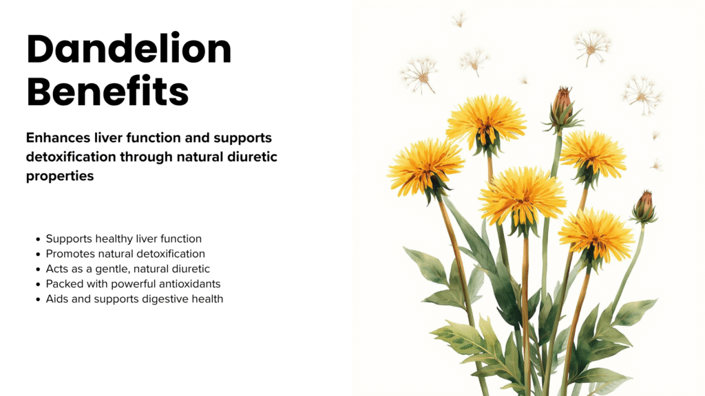 | Dandelion Root | Liver support, detox | Morning | Gentle cleanse |