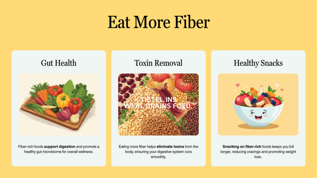 Without a healthy diet, no weight loss or detox regimen will be effective. Whole, unprocessed foods lower inflammation, maintain stable blood sugar levels, and promote liver function.